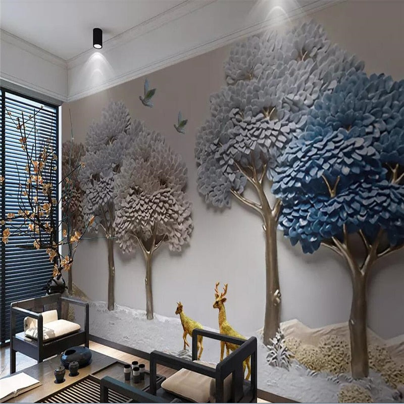 3D Wallpaper Golden White Tree SKU# WAL0266